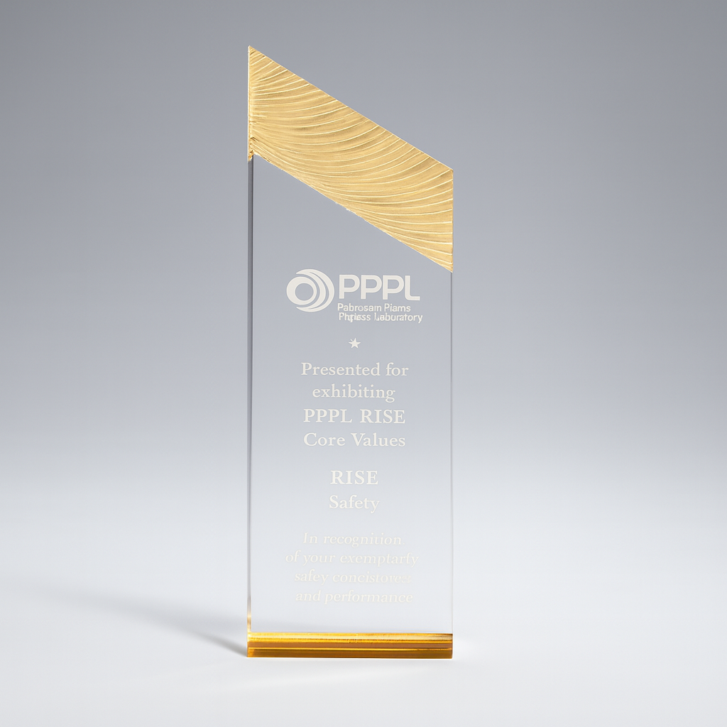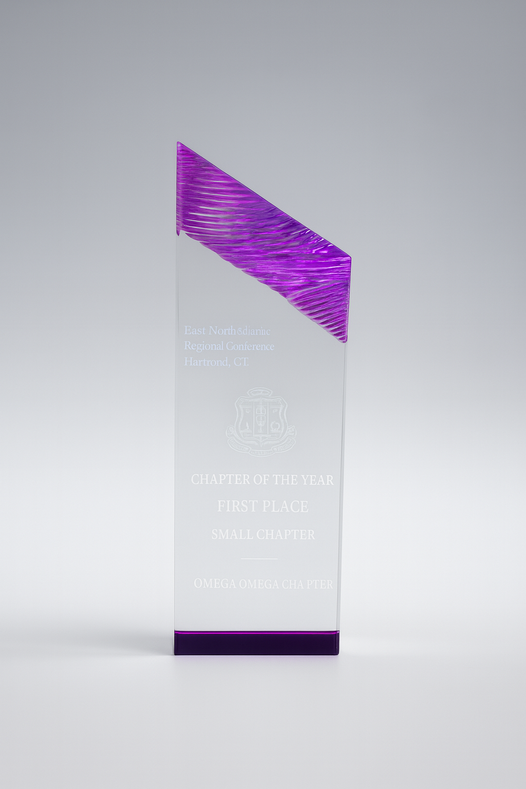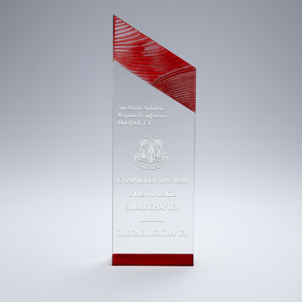 This peaked, carved acrylic trophy is available in 4 stunning colors and has a beautiful presentation that will highlight the recipient's accomplishments. Beautifully cut and highlighted, it proudly recognizes an achiever for all their accomplishments.