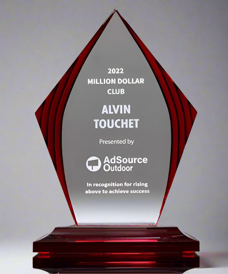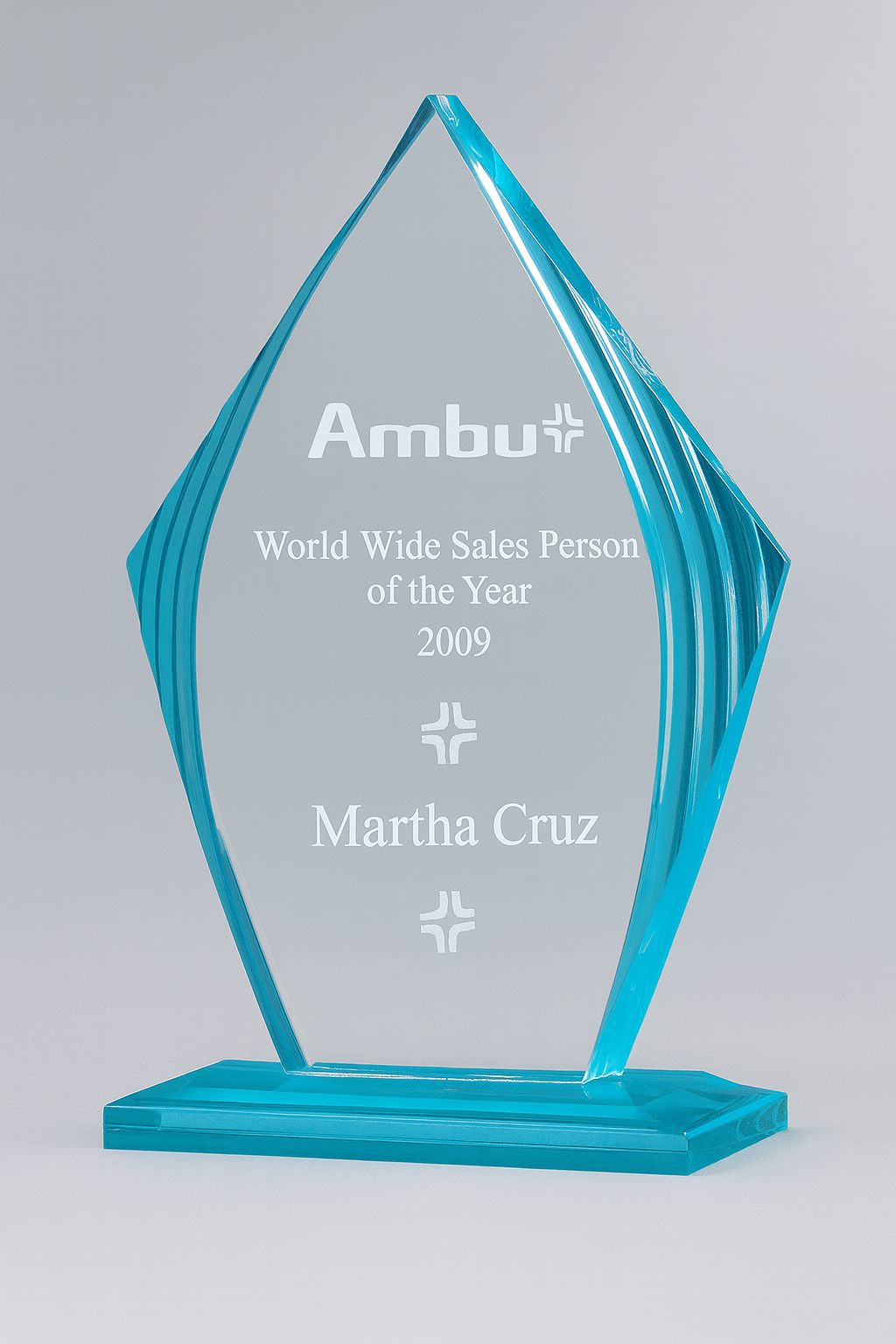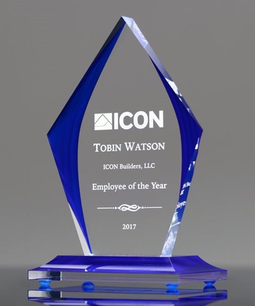 It's a powerful symbol of excellence, featuring a stunning diamond clear design with bold red or blue accents. Each award is carefully crafted with thick 3/4" acrylic and packaged in its own individual gift box.